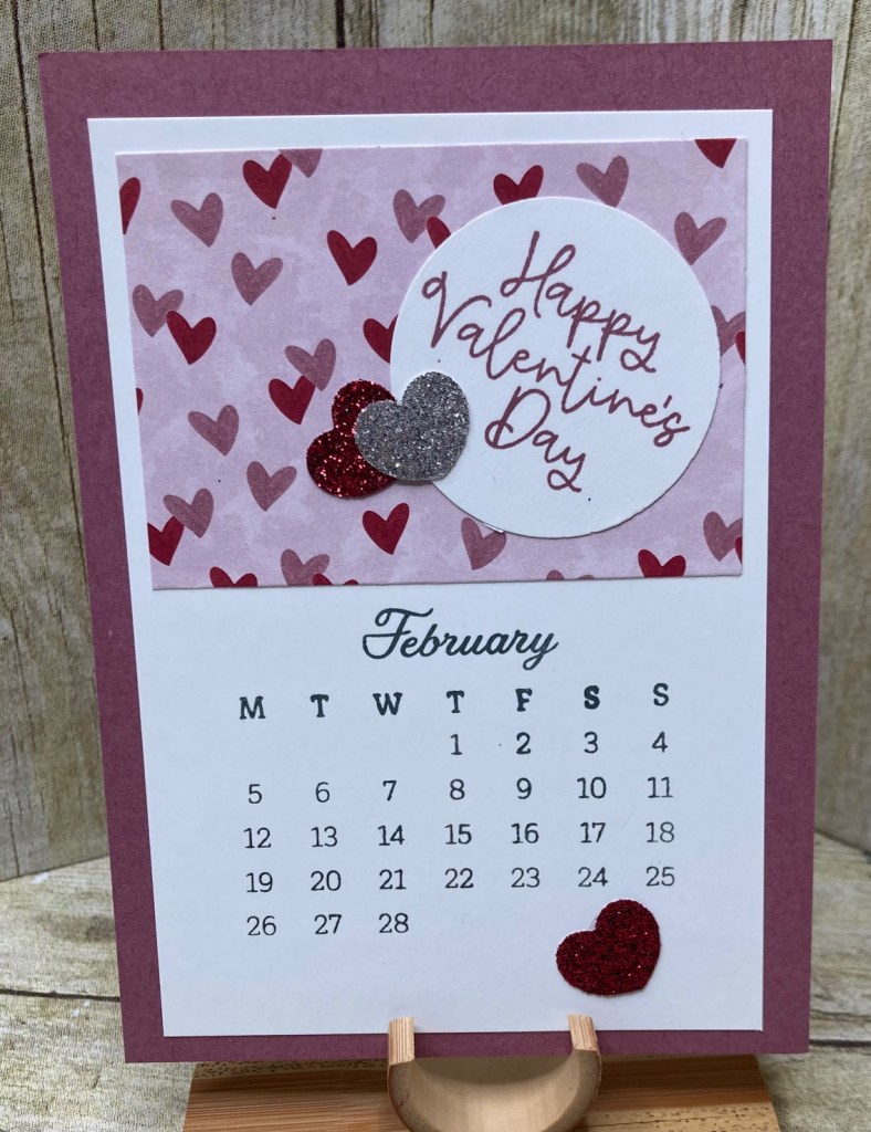 For the last 4 – 5 years I have designed and enjoyed making my flip over desk calendar for the ladies who came to my classes. As I have done for the last few years I am going to be sharing one at the start of each month. Like last year, I recognize not everyone is into making 3D items so have created a card for each month, using elements from the calendar for that month. .