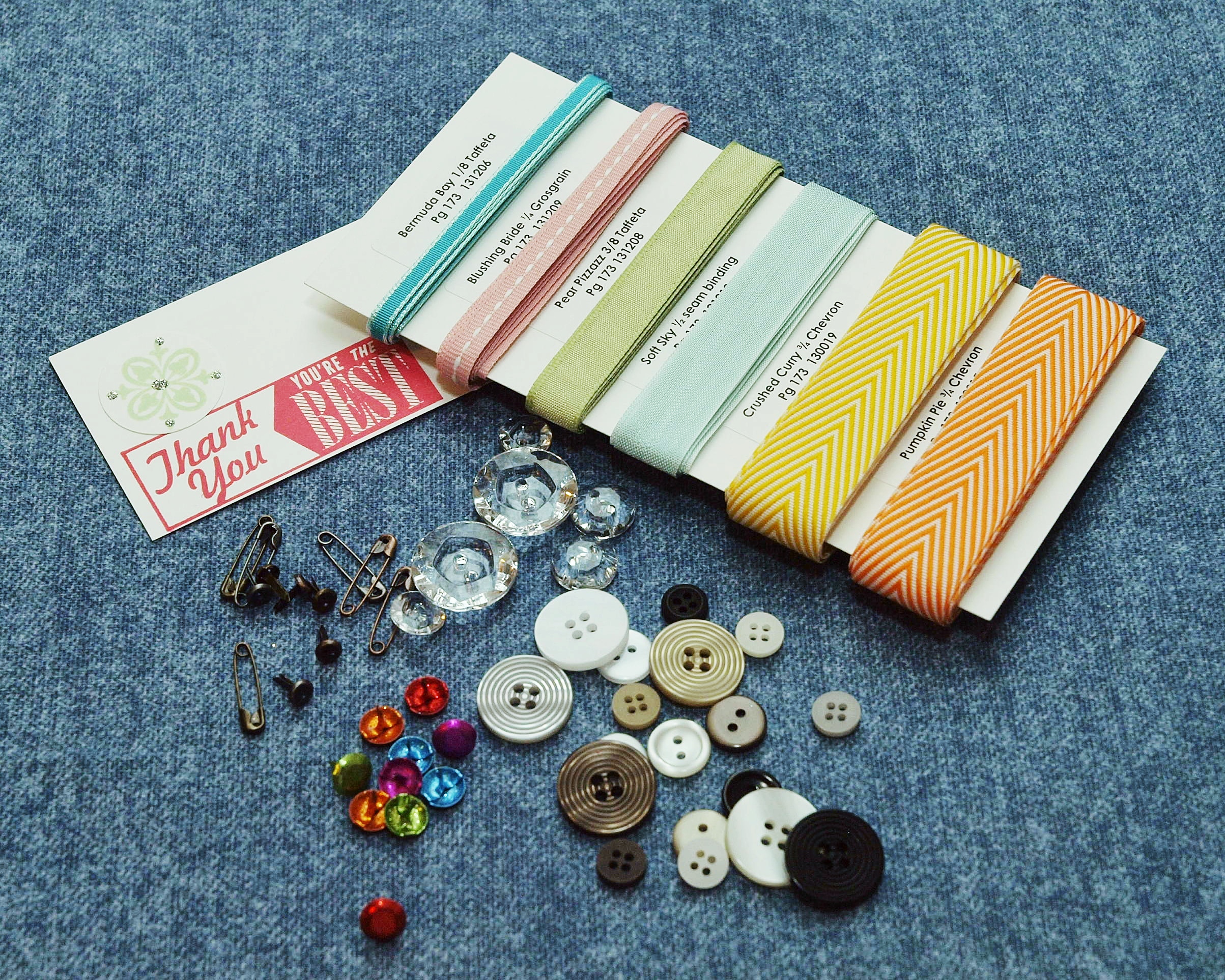 This months Buttons and Bows accessory club includes a bunch of the new ribbons, buttons and trinkets. I am planning an accessory share from the new holiday catalog, if you are interested in joining in and getting your hands on the new ribbons and trinkets ~ contact me asap for more details, these shares fill up fast!