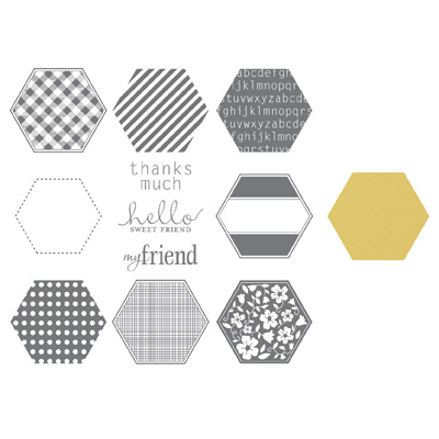If you like hexagons–our six-sided friends–you’re going to love the Six-Sided Sampler set. With eight different hexagonal images and three sentiments, the creative possibilities are practically endless. Coordinates with the Hexagon Punch. Buy the Six-Sided Sampler wood-mount or clear-mount stamp set and coordinating Hexagon Punch together at a 15% discount.