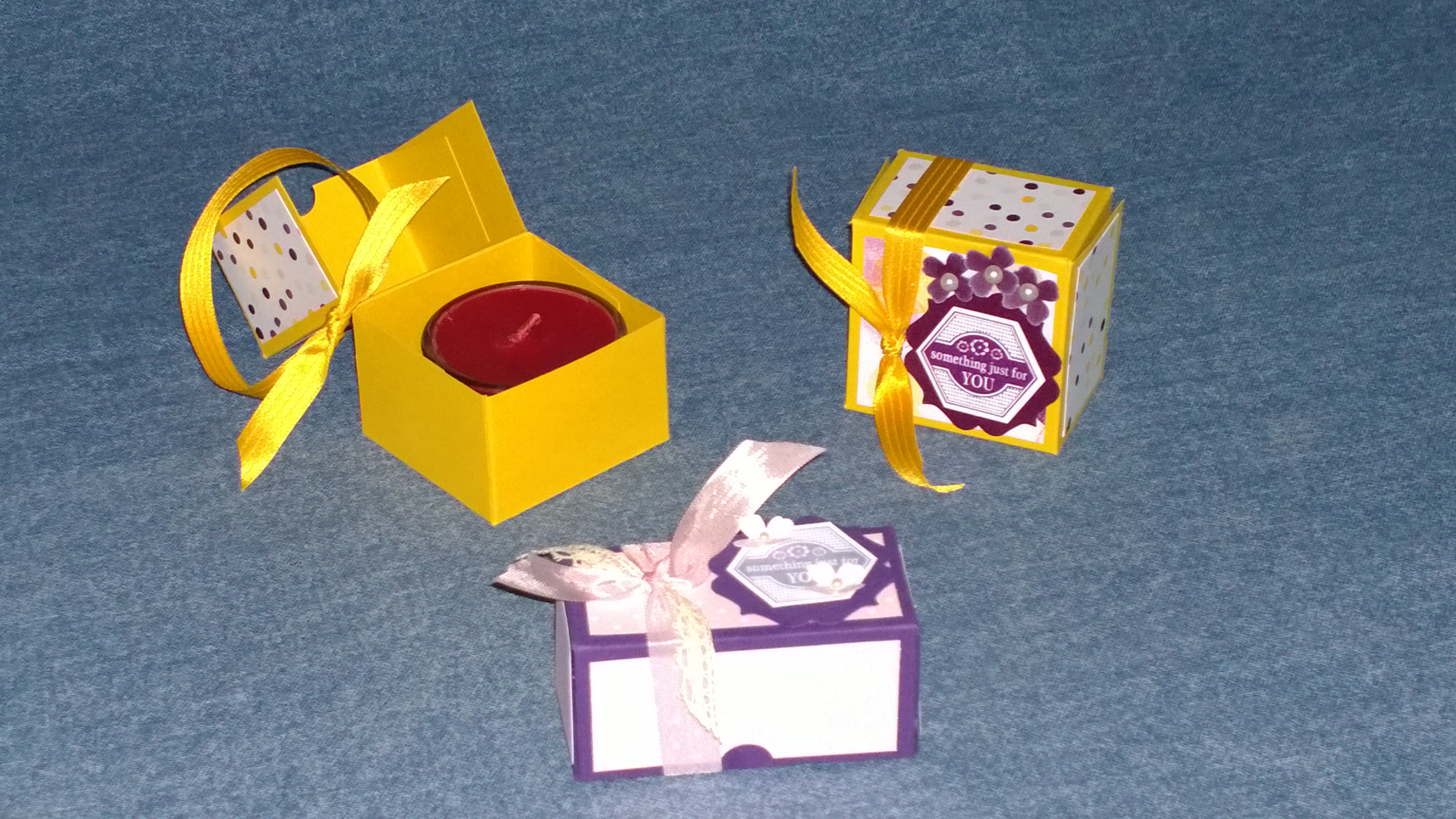 I made these little candle boxes as a gift for my room-mate, Stacy, and my SU mom, Jackie, and grandma, Sharon. I wanted something small that would be easy for me to pack and them to take home.