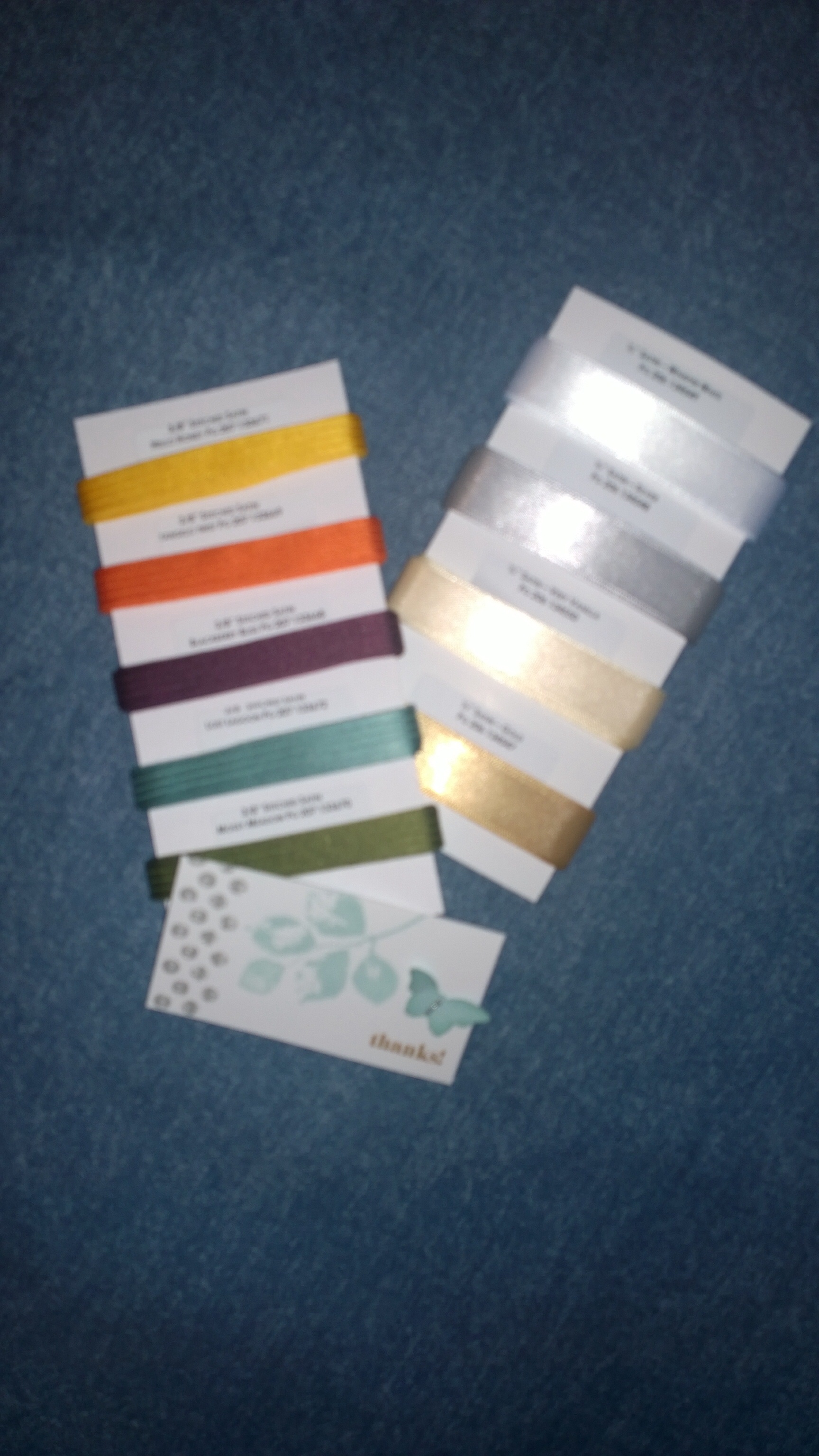 The new 2014 ~ 2015 Stampin’ Up! catalog brought a new selection of ribbons and embellishments. Each year I host a ‘share’ which I call ‘Buttons and Bows”- which runs over 4 months. Last month I shared August’s selection of goodies and I thought I would share those for September!