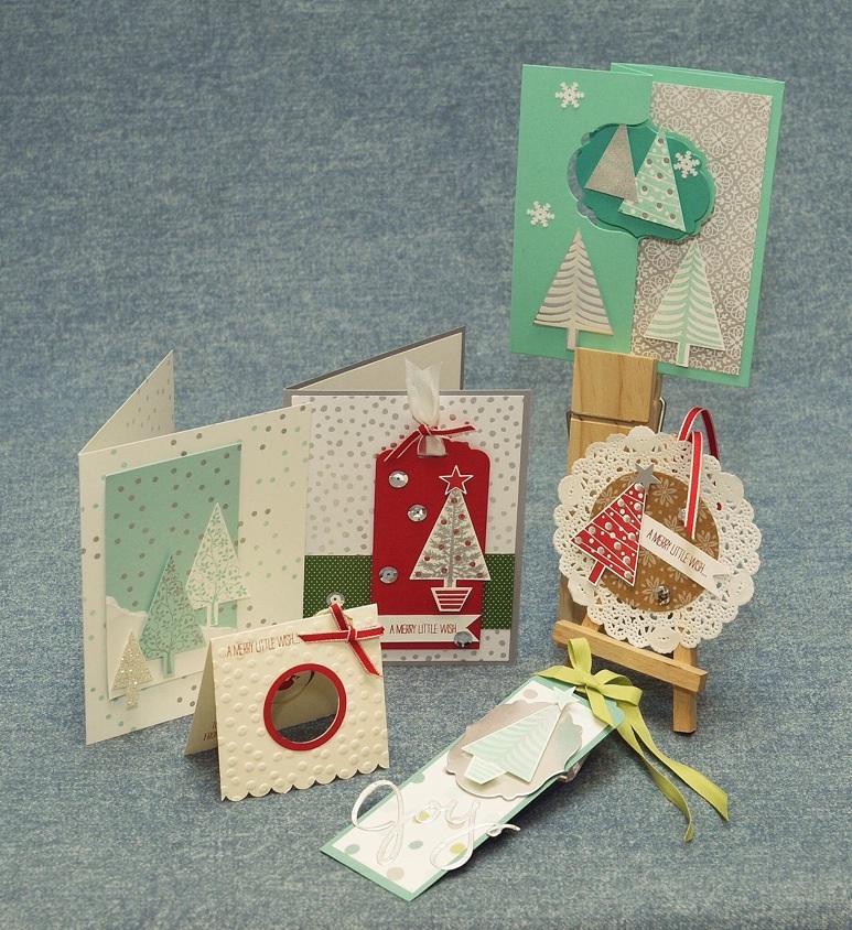 Each of the packs contain the supplies to make 3 completely different cards and 3 gift tags with the ‘Festival of Trees” Stamp set. This kit includes the stampin’ dimensionals and a video tutorial for each card and tag.