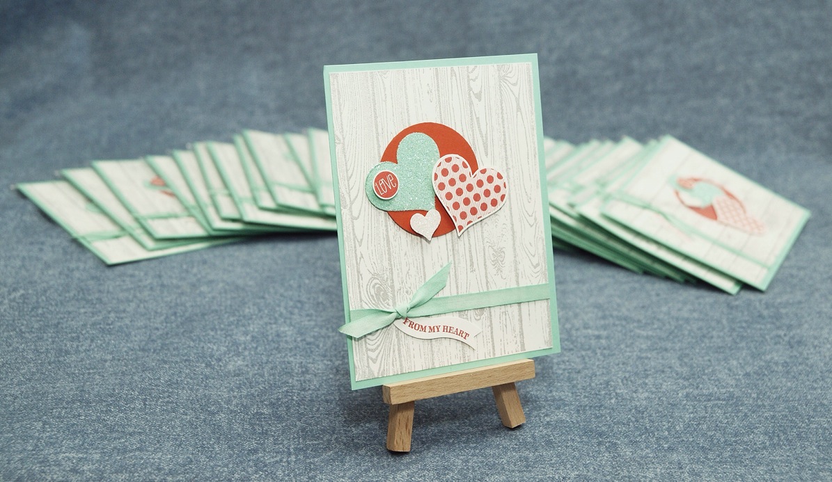 So this is the second of my Valentine’s cards, it is one I made as a swap for Stampin’ Up!’s convention last summer. I chose really contemporary colors for this one and it used heat embossing technique for the background. Once again, I think it would make a perfect anniversary, engagement or wedding card!