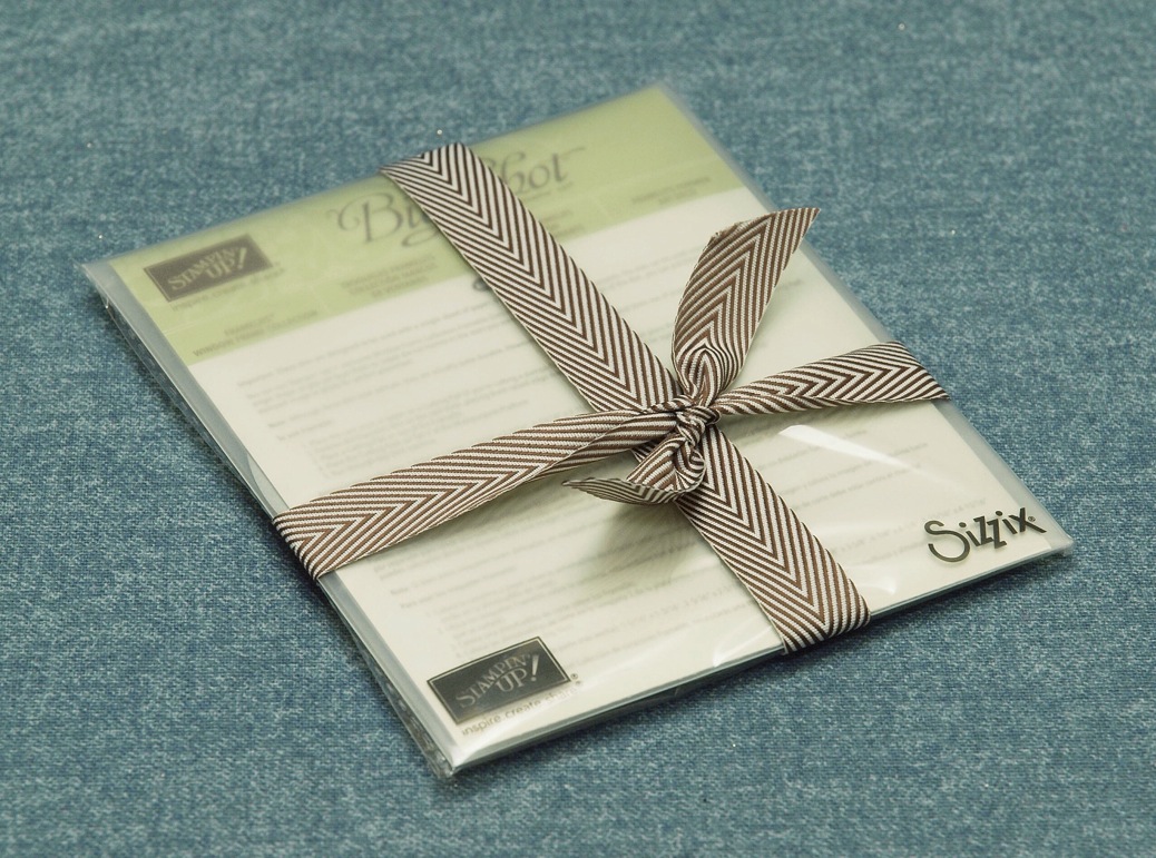 And this month 1 of my lucky ladies qualified for their free item (value of $25) and she chose the Window Framelits….. all wrapped up and ready to go!