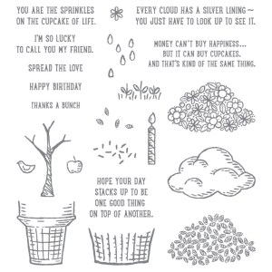 This month I have chosen ‘Sprinkles of Life’ from Stampin” Up!. This set has 22 different pieces, a mixture of images and greetings that cover a whole host of occasions. Stampin’ Up! donates $3 to the Ronald McDonald charities for each of these sets they sell!