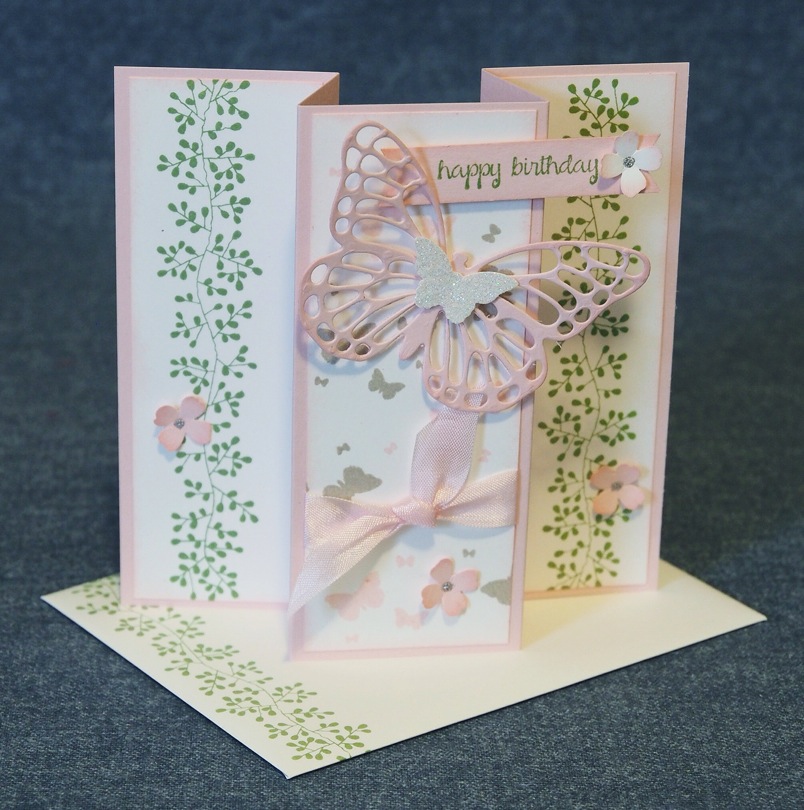 Each of the white panels were sponged with Pink Pirouette ink as were the little flowers and the large butterfly.