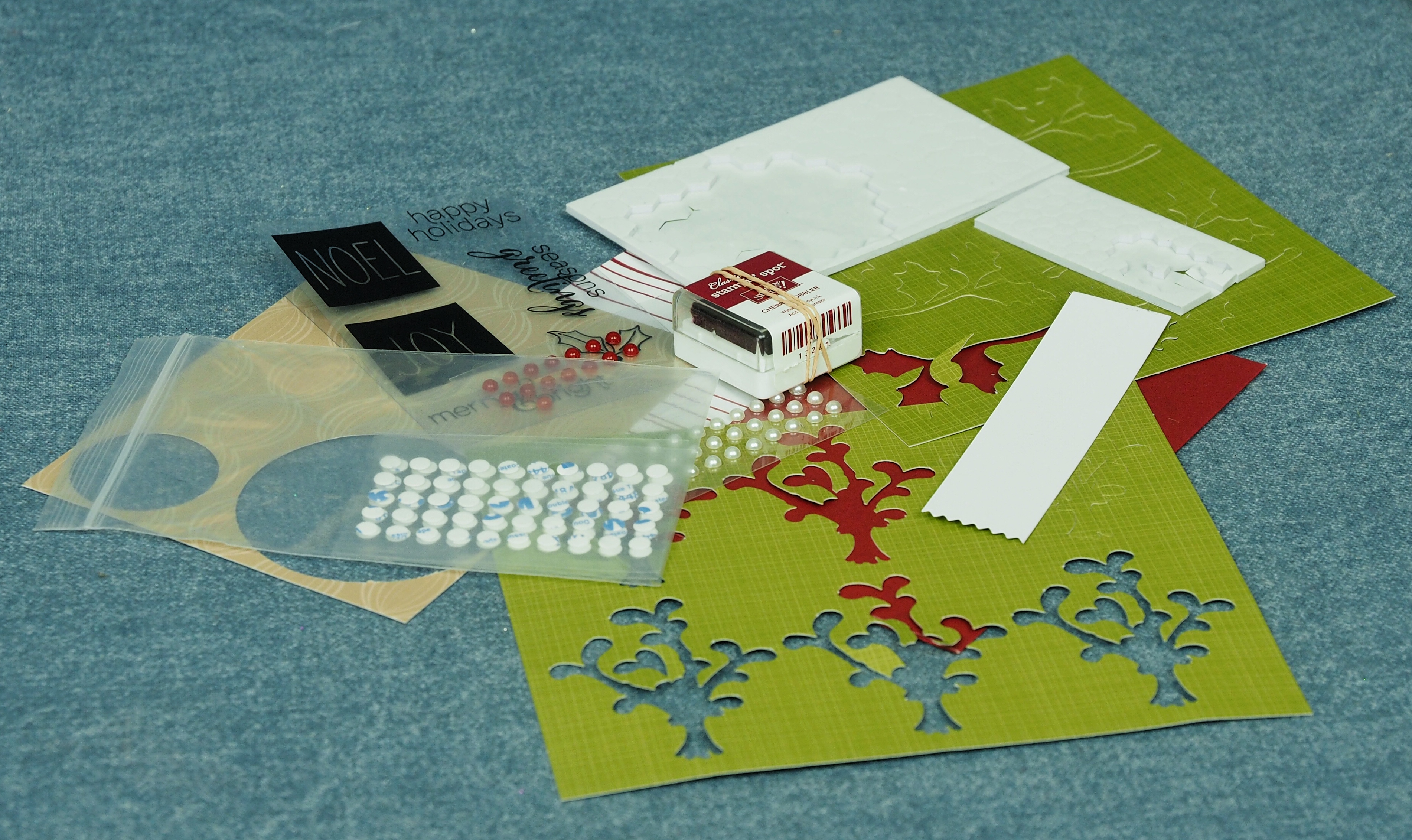 Back in November I shared the opening of that month’s paper pumpkin kit ~ Mistletoe and Holly ~ with a couple of videos and also launched my Facebook page ‘Cindy’s Pumpkin Patch ‘ where I shared each of the projects I made using the supplies within the kit and a few bits and pieces from my ‘stash’. The kit has supplies to make 10 cards – after I played around I finished with 9 cards, and 2 gift tags and I had a blast doing it!