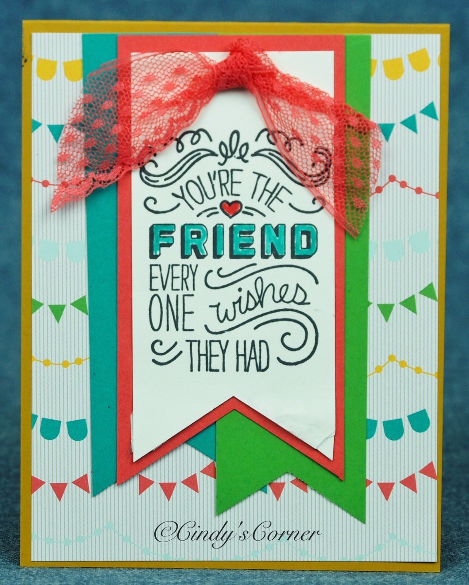 The banners pick out some of the colors from the paper – Lost Lagoon, Cucumber Crush and Watermelon Wonder and the base card is Crushed Curry.