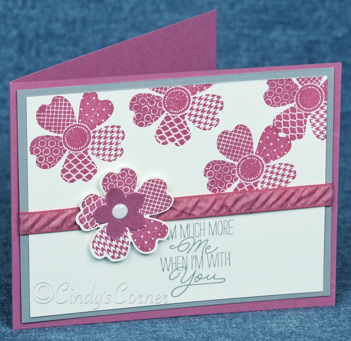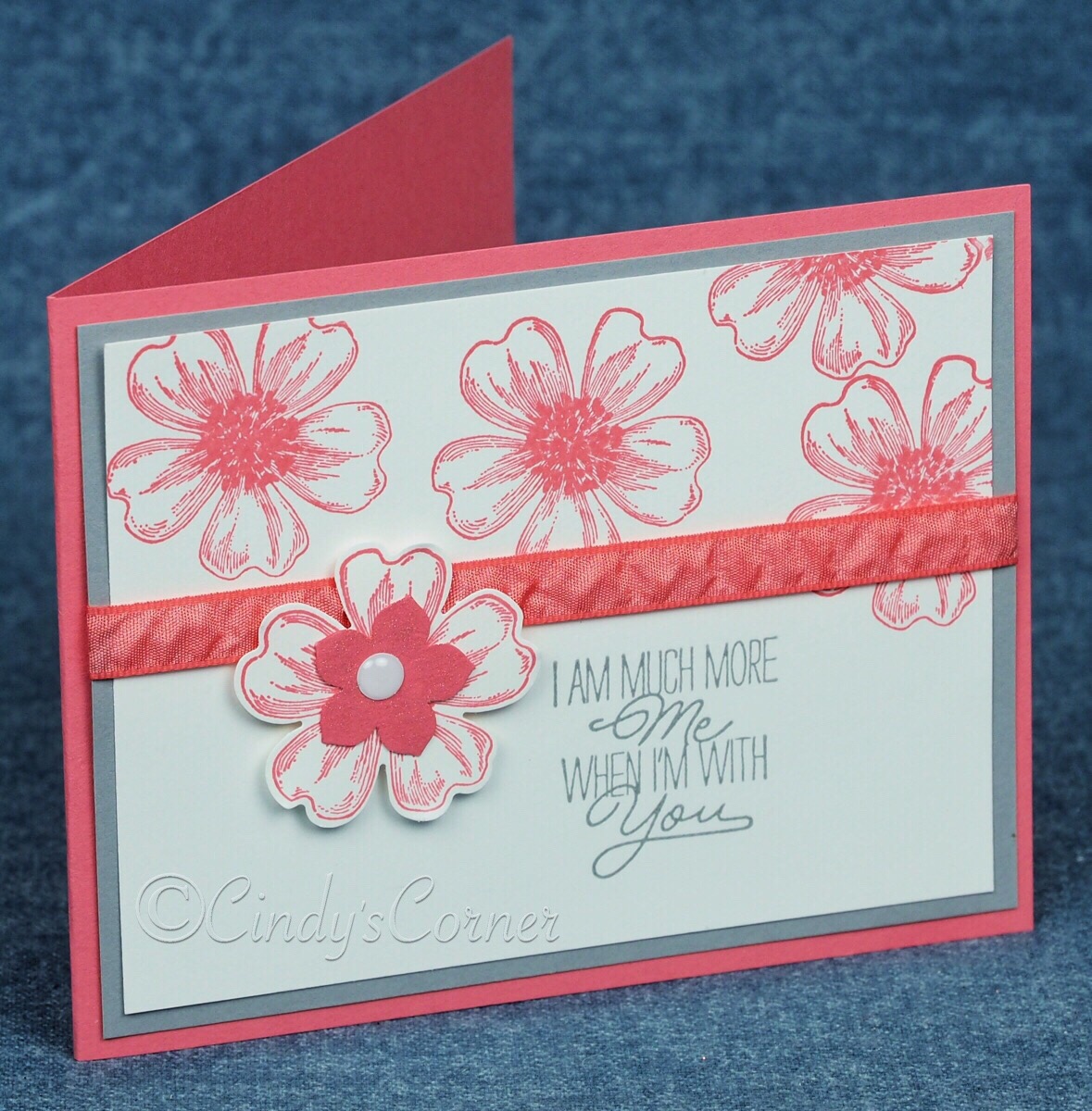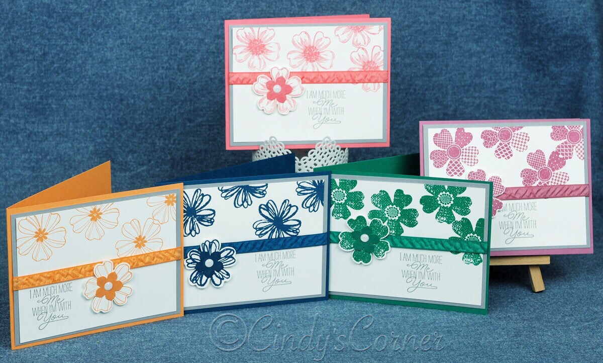 For my catalog launch at the begining of June I made up a number of cards to showcase each new color and its coordinating ribbon.