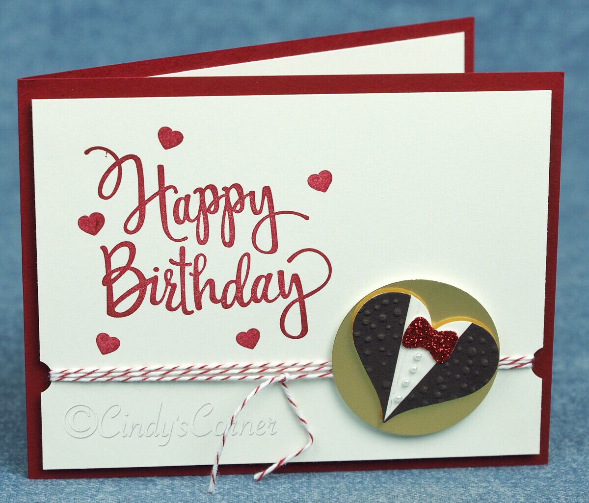 The greeting is “Stylized Birthday’ ~ a great single stamp which is a must for your stash!! I used scraps of Gold Foil, Early Expresso, Very Vanilla and Red Glimmer Paper to make up the ‘sweetheart’ tux!
