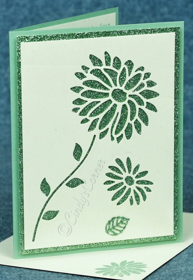 Layer 2: 5 x 3 3/4 ~ the Stylish Stems framelits dies were used to cut into this layer.  I found it easier to cut each shape out separately – it meant running the card thru the Big Shot 3 times but when I tried to do all 3 at once there was a little movement ~ even with the magnetic platform.