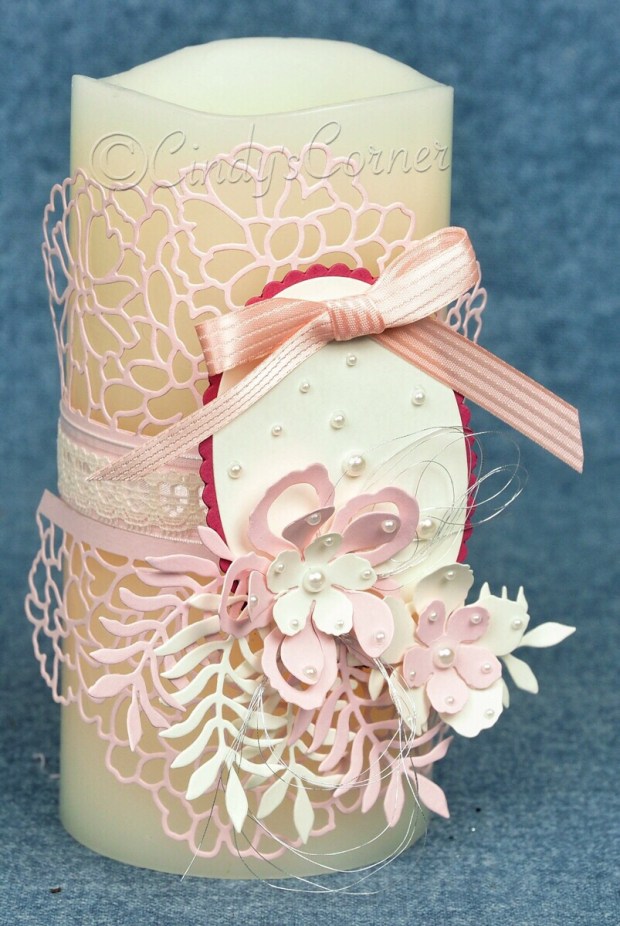 During a visit to Lansing MI back in February I saw a fellow papercrafter had decorated a candle and I was so taken with it I wanted to have a go myself.