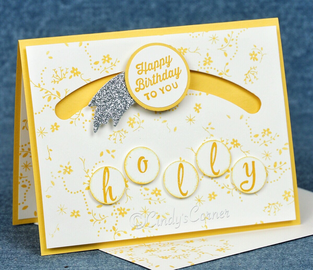 Yesterday was the birthday of our youngest grand-daughter, I wanted something that was a little bit of fun and entertaining for a 2 year old and decided on a penny spinner card. These are really easy to do with Sliding Star Framelits and Big Shot.