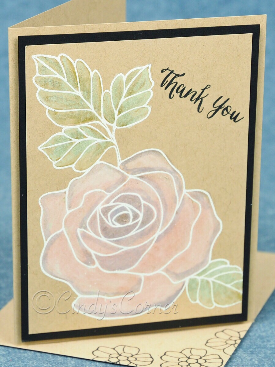 The big, bold rose lends itself to a really pretty technique known as ‘White Washing’. This would work on most any image that that has space to ‘color in’