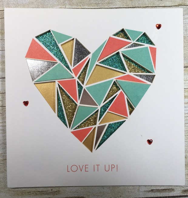 This is the card my husband gave to me, he said it was hard to find something ‘arty’ ~  didn’t  he did well?  The heart has cut-work backed with glimmer paper which is gold and ‘Bermuda Bay’ ~ I can also see Calypso Coral and Pool Party in there as well!