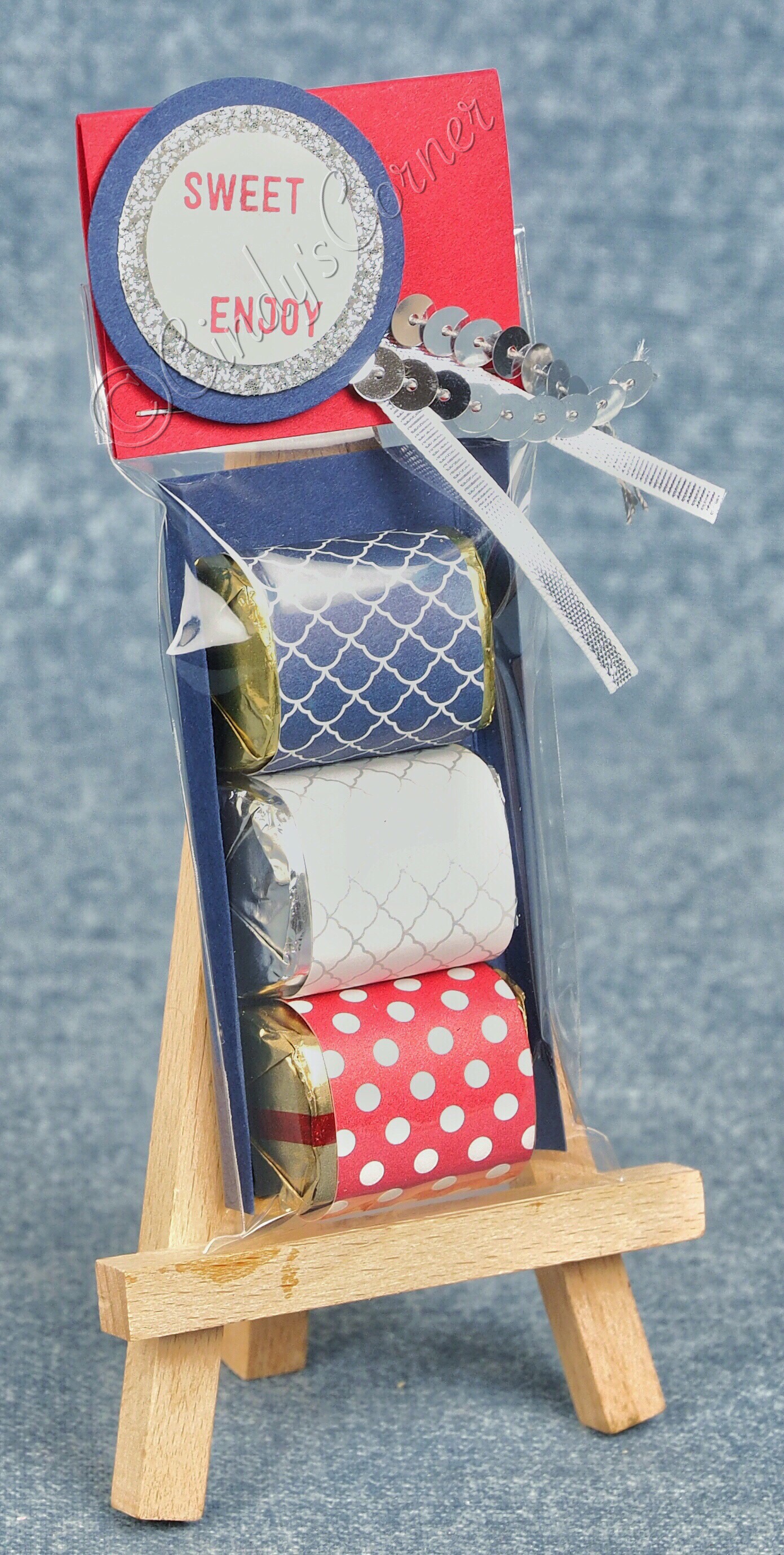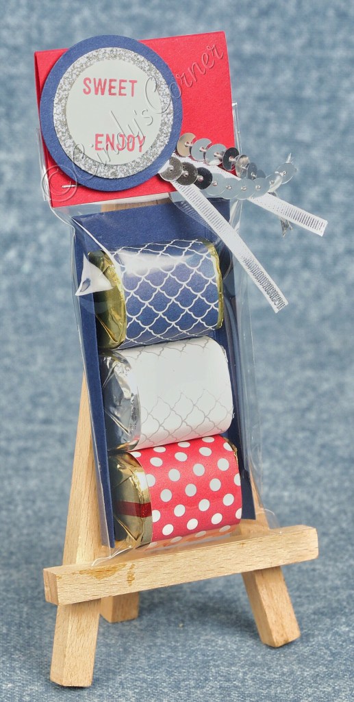 I love to take candy (sweets) and make them into something a little bit special. I have been decorating Hershey’s Nuggets for several years now – giving them as thank you’s and selling them at craft fairs in the run up to Christmas. They are very quick and easy to do, taking just a few supplies……. and you can use them for just about any occasion you can think of. The ones I am sharing today were for a July 4th dinner we were invited to a couple of weeks ago.