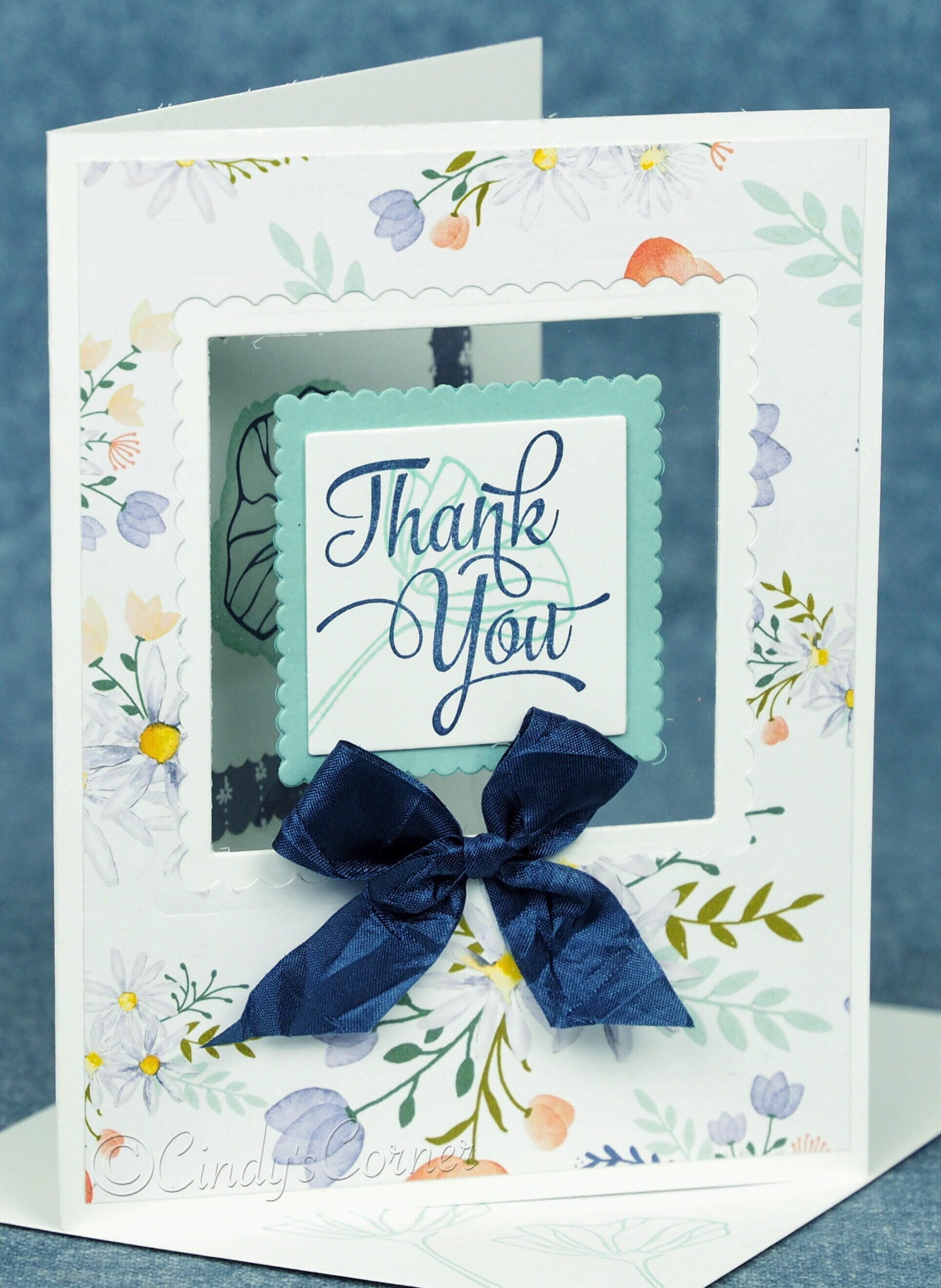 They are called ‘Floating Image’ because the ‘Thank You’ in these cards have been attached to some window sheet (acetate) Thanks to Connie Stewart for the inspiration.