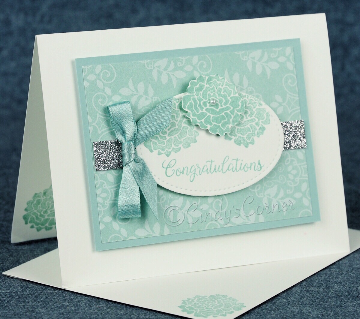 To keep with the mono color theme I used the 3/8 Shimmer Ribbon which is available in Pool Party.