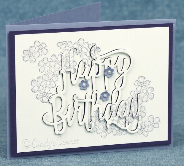 The eclipse technique is addictive, everything I have made with the technique I just love. The flower image is from the Birthday Blossoms stamp set and stamped before cutting out the message. While it is easy to do it can be a little time consuming using the Happy Birthday Die as each of the little pieces in and around the letters have to be individually adhered to the base card before attaching the ‘Happy Birthday’ piece.