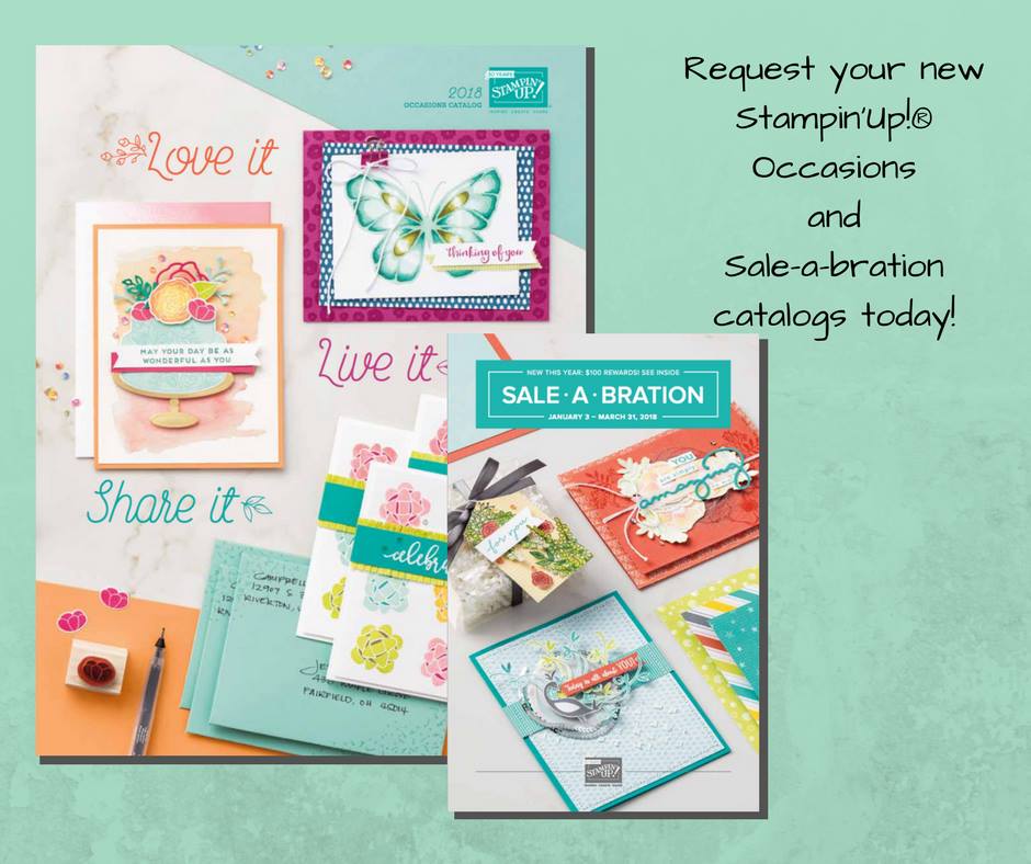 If you don’t already have a Stampin’ Up! demonstrator and are interested in receiving a complimentary copy of both the Occasions and SAB brochures I’d be happy to send you one.