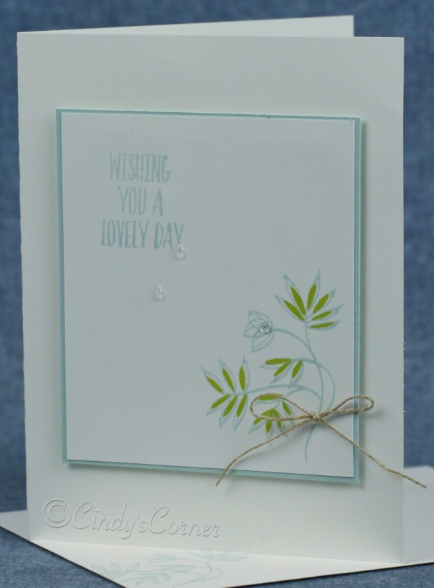 I chose the Lovely Wishes Stamp Set from the Occasions Catalog – it has lots of ‘swirly’ images with leaves and dinky little flowers that remind me of tulips.