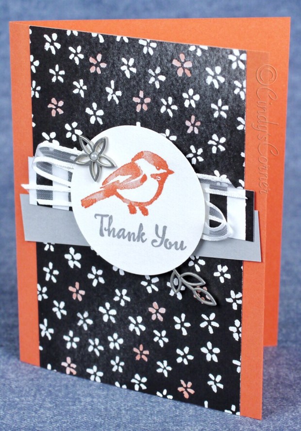 Petal Palette – I just love this stamp set – I have shared in the past how much I love flowers and using them in my cards and this one has them + a cute little bird and a boatload of useful greetings. Today’s card uses a number of products from the Petal Passion Suite in the Occasions Catalog. This suite features mainly black and white with a little flash of silver – so it will go with just about anything in Stampin’ UP!’s range of colors, today I chose to go with Calypso Coral.