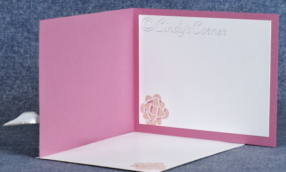 For the inside of the card and the envelope I used the ‘gift bow’ stamp with the Powder Pink then the ‘filler in’ stamp with Sweet Sugarplum. It was very easy to line up as the stamp set is photopolymer so you can see thru it!