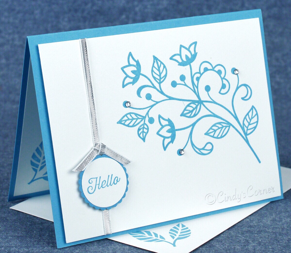 I have used the Flourishing Phrases Stamp Set which has the lovely swirly stem of flowers as well as that cheeky little ‘Hello’ that could work for almost any occasion.