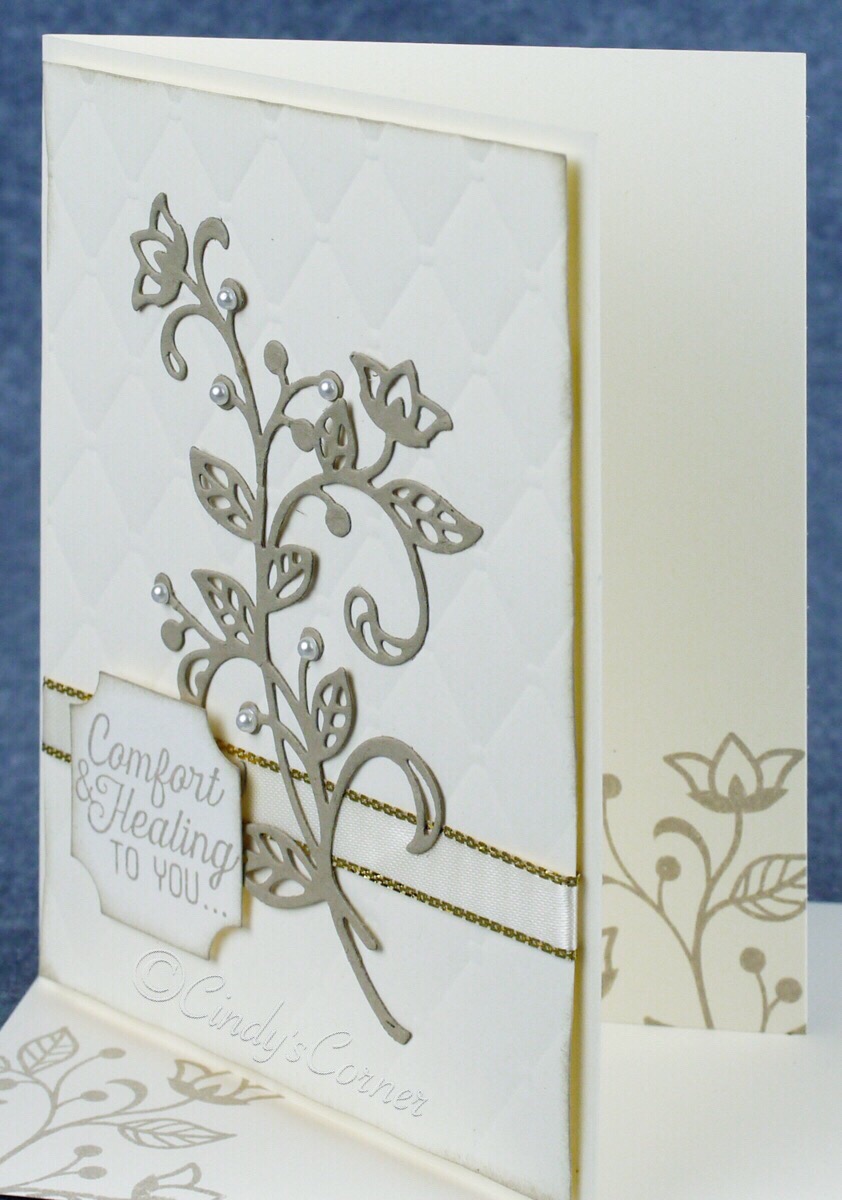 Once again a gentle stroll thru my stamp sets and dies I spied the Flourishing Phases stamp set and the coordinating Flourishing Thinlits Dies – neither of which had been used for a while.