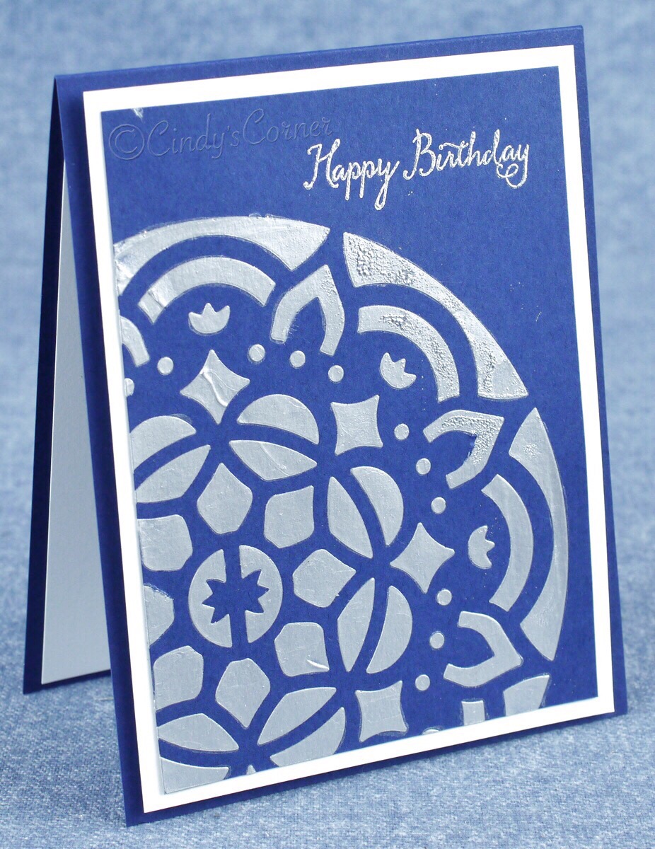 The ‘Happy Birthday’ is from the Balloon Celebration Stamp Set and the ‘Merry Christmas’ from Star of Light Stamp Set. Both were stamped with Versamark and Silver Embossing Powder added to compliment the Silver Embossing Paste.