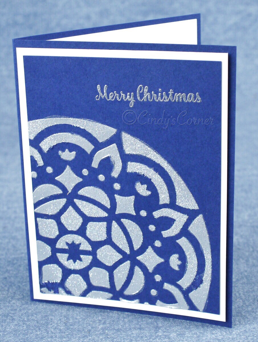 Very often I make a card for a particular occasion then look at it thinking that it would also work for another occasion, and so it is with today’s card. I wanted a really striking birthday card and used the Silver Embossing Paste on the Night of Navy Card. As soon as I had finished the birthday version ‘ Christmas’ shouted out to me! I made a second one and sprinkled some Dazzling Diamonds Glitter over it before allowing it to dry.