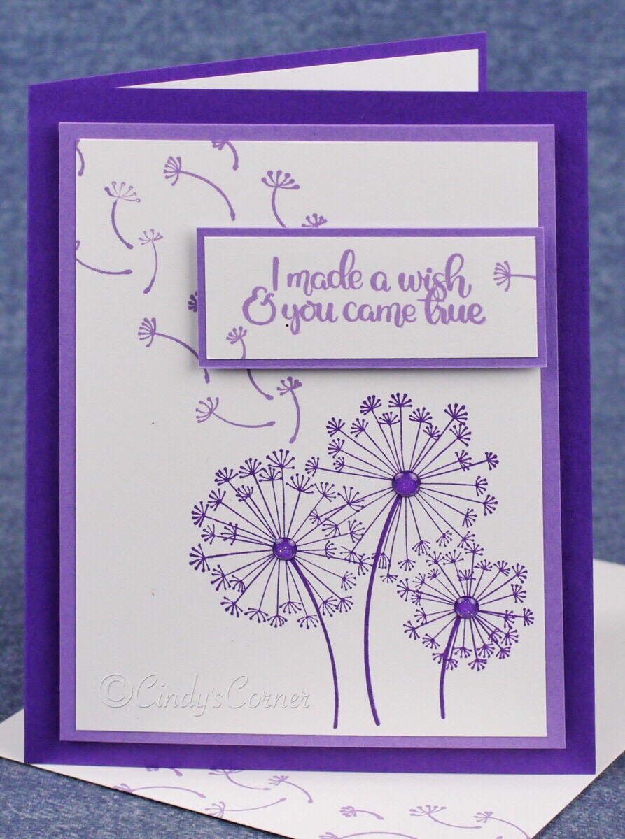 Dandelion Wishes has 3 greetings the one I used here plus one that could be used for a get well card or to send and ‘anytime’ card, the third I think would be perfect for an engagement or wedding ~ how is that for one stamp set covering just about all the basis? You need to add it to your order today!