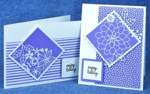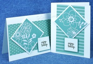 In July I hosted a Designer Series Paper Share and although it did not include any of this ‘lacy’ paper it did include the newly introduced 6 x 6 color collections for each of the color families, and I want to show what can be achieved with a 6 x 6 piece of paper.