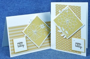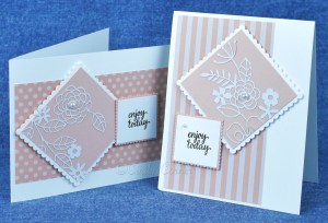 This is double sided paper featuring ‘formal’ stripes and polka dots and ‘casual’ polka dots and stripes – so my cards have featured both sides of the paper and I chose to use the ‘Subtles’ collection.