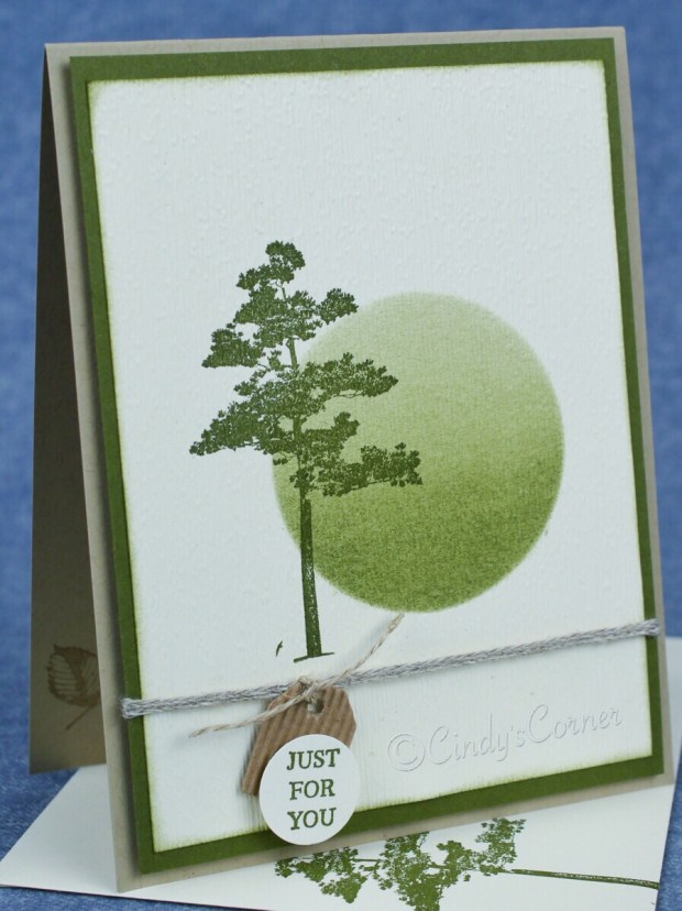 Then I stamped the tree and sponged the edges then ran the layer thru the Big Shot with the Subtles Dynamic Textured Impressions Embossing folder before adhering it to the Mossy Meadow layer with Multipurpose Liquid Glue.