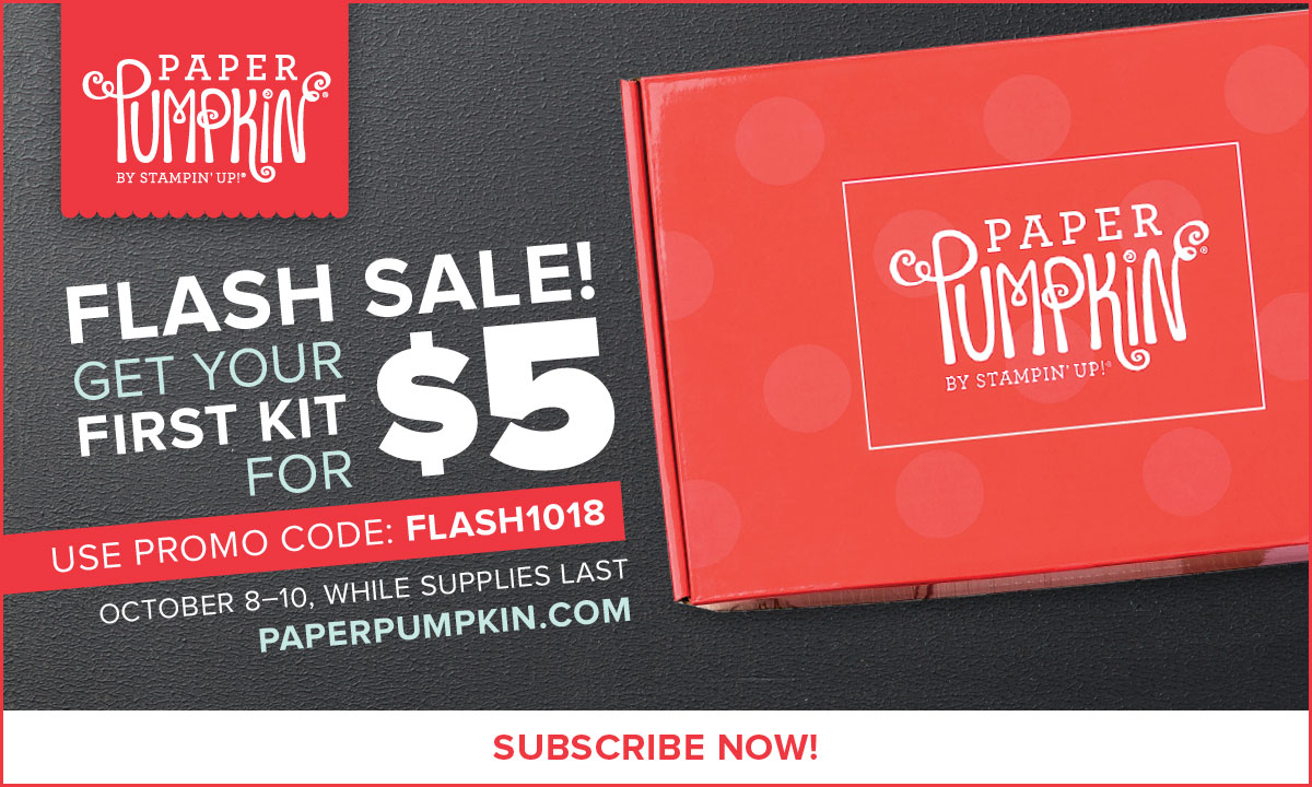 It is a while since I spoke about Paper Pumpkin ~ Stampin’ UP!’s monthly subscription ~ from Monday 8th thru Wednesday 10th October they are offering a FLASH SALE to all new subscribers, where you can get October’s kit for just $5!!!!! Read on…………….