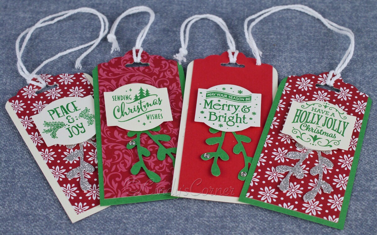 Then it was down to decorating as the whim caught me ~ each tag has a different greeting from the stamp set then I added some leaves cut with the Sprig Punch from Call Me Clover Card and some Silver Glimmer Paper then attached them with some Stampin Dimensionals and Mini Glue Dots.