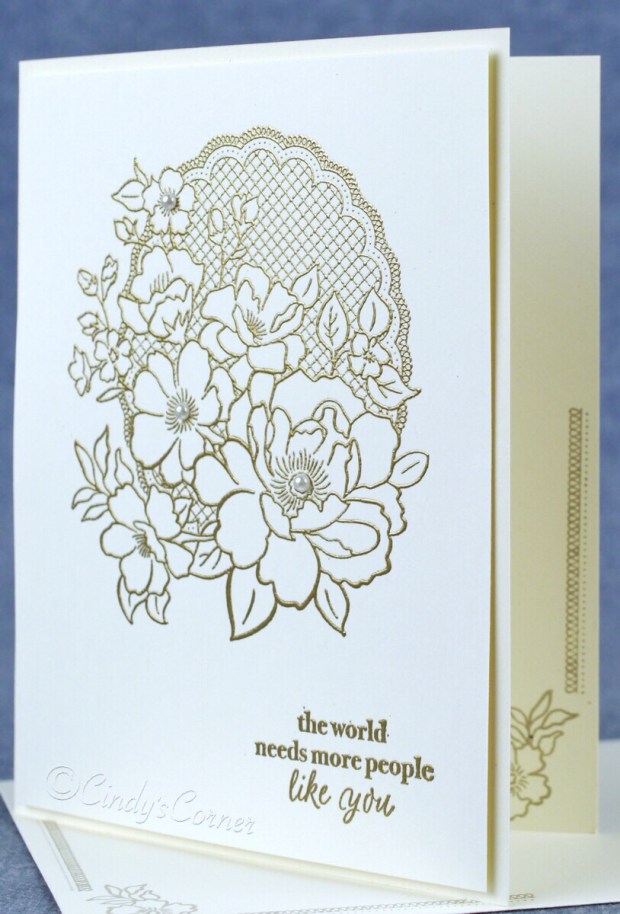 This stamp set is true to its word – it is LOVELY ~ so serene and peaceful. I chose to use heat-embossing to really highlight the delicate details.