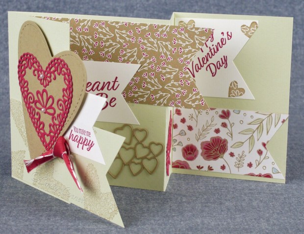 Wonderful Valentine’s Day card. I love all the layers and textures to this fun fold. Beautiful card design. 🙂