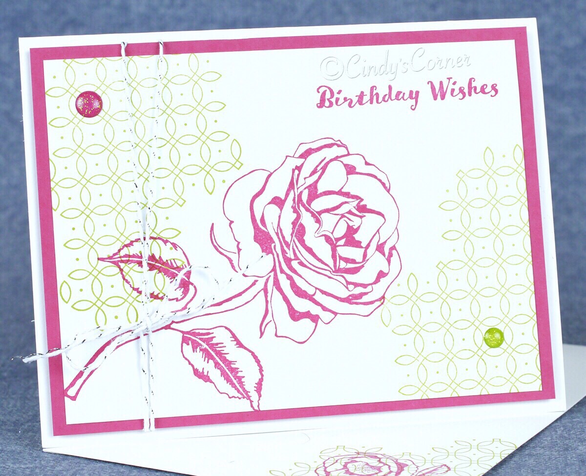I will be so sad when Lemon Lime Twist retires at the end of May – it is such a bright and cheerful color and I found it goes surprisingly well with all sorts of other colors in the Stampin’ Up Color families. Today I have paired it with Melon Mambo and the Graceful Garden Stamp set to create a feminine birthday card.