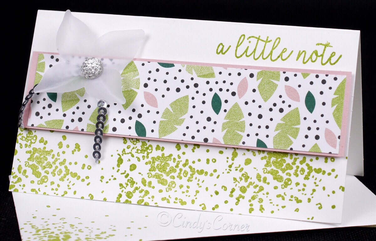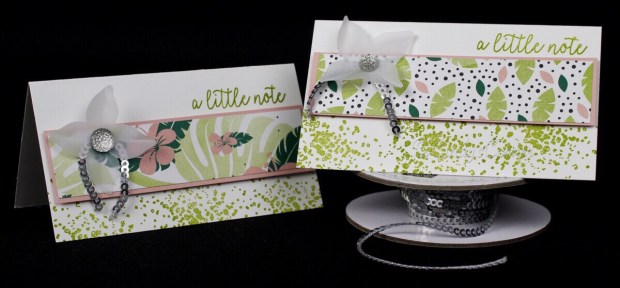A few days ago I shared a gift card holder featuring the Tropical Escape DSP, to make them I had to trim down the 6 x 6 sheets and was left with some strips that were just begging to be used! I was also ready to make my ‘thank yous’ for my lovely customers who had shopped for their Stampin’ Up supplies with me during March ~ so paired up my little strips with the super cute Narrow Notecards & Envelopes
