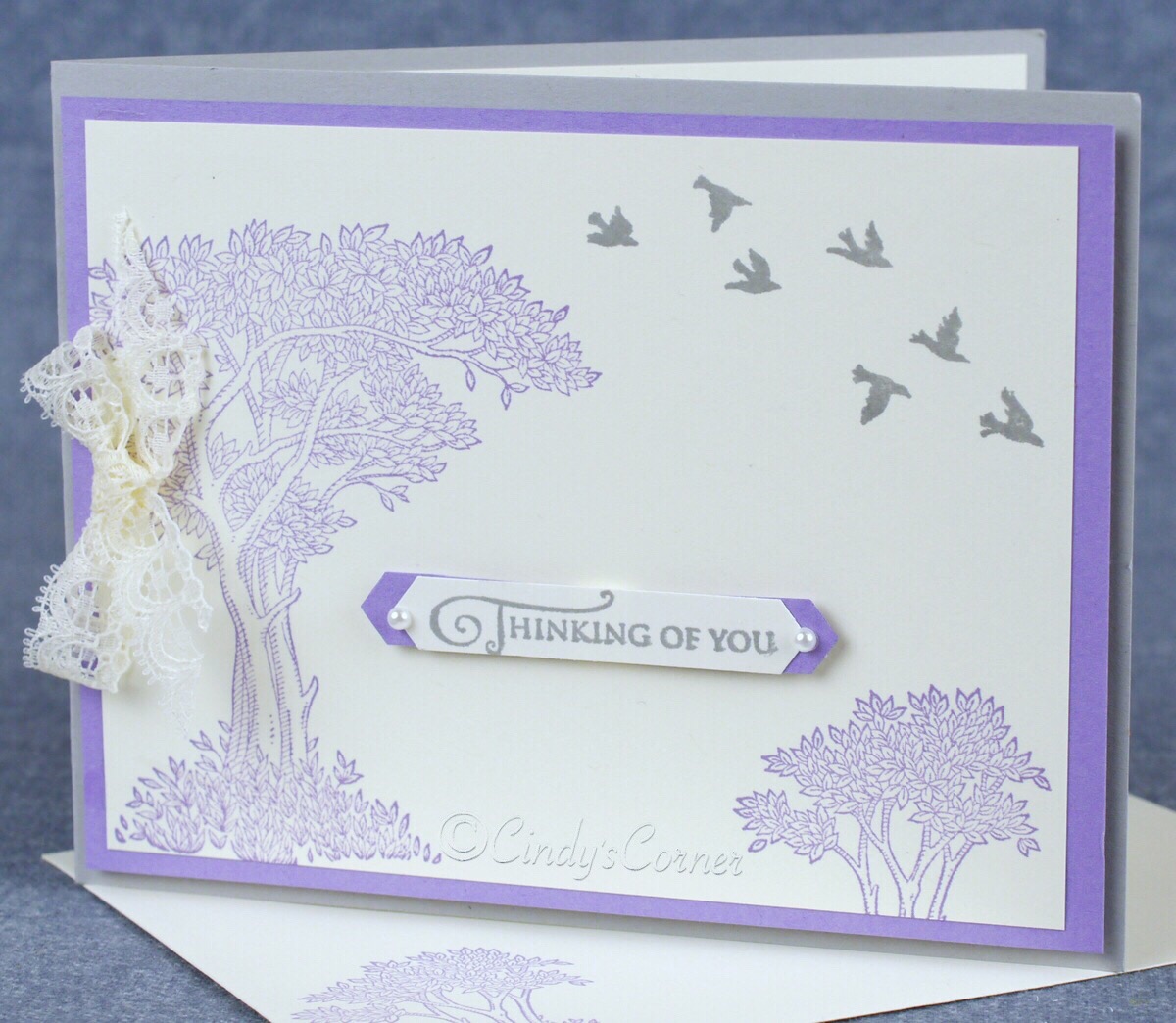 Today’s card uses the Golden Afternoon Stamp Set ~ along with the 1/2 ” Lace Trim. This set has some useful phrases, whether you use it for Thinking of You as I have done or Sympathy, Thanks as well as ‘ Hope your Day is as Wonderful as You” If you are a regular follower of my blog you will know I love greetings with a cursive script and this set has really pretty ones. 🙂