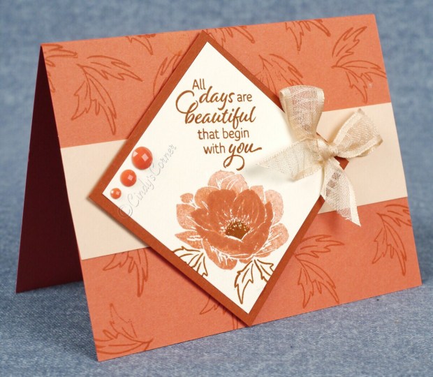 So the 4th new In-color I have chosen to share is Terracotta Tile and as the other day with the Pretty Peacock I have been experimenting with other colors in the Stampin’ UP! family. Petal Pink and Cajun Craze work really well together with Terracotta Tile.