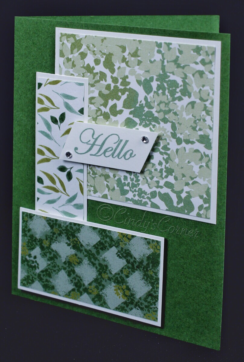 Layer 3: 3 x 1 5/8 Whisper White Card and 2 7/8 x 1 1/2 Garden Lane DSP