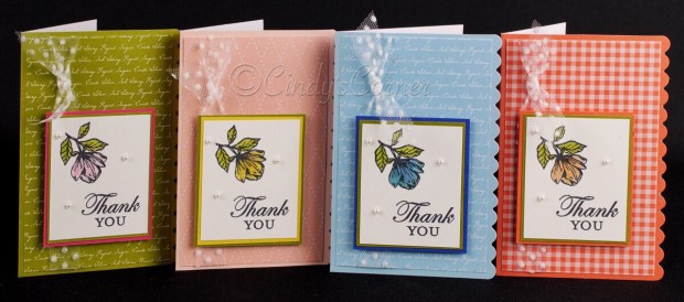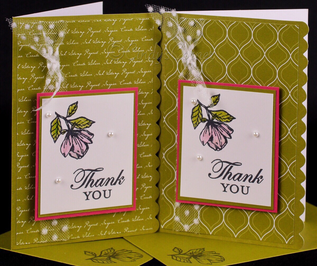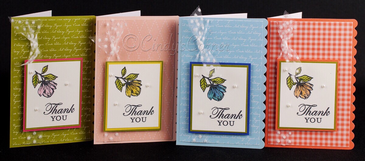I chose to use these along with the Magnolia Blooms Stamp Set and some water color pencils to make the Thank You cards for my lovely customers who shopped with me for their Stampin’ UP! supplies in July.
