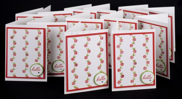 My August card featured the Budding Borders Stamp Set along with my Stamparatus which made my cards very quick to line up and get a good stampin’ finish.