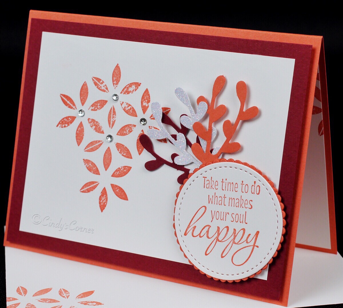 Today I have paired Calypso Coral and Cherry Cobbler – not a color combination I would have thought would go together until I tried it – you have to be adventurous, get those inks out and work with them – you will surprise yourself on how the wonderful colors we have in the Stampin’ UP! color families go together!