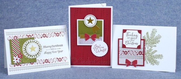 When I finished mine I had some ‘bits’ left over and could not bear to just discard them so used co-ordinating Christmas Countdown Stamp Set along with some Whisper White Notecards and Envelopes, a bit of extra card and created 3 delightful Christmas Cards!.