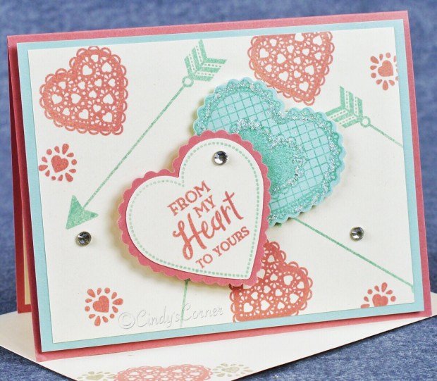 Just a couple of weeks away from Valentine’s day so today I have the perfect card for that special day – I was playing with some color combinations and really did not know which I preferred so I have included both in today’s post. It just occurred to me that you could use this for an anniversary card, wouldn’t that be pretty?