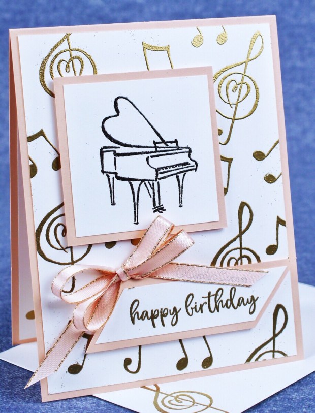 Yesterday was our oldest grand-daughter’s birthday, about 18 months ago she started to learn to play the piano, so it was a no brainer that I would use the Music From The Heart stamp set for her card this year.